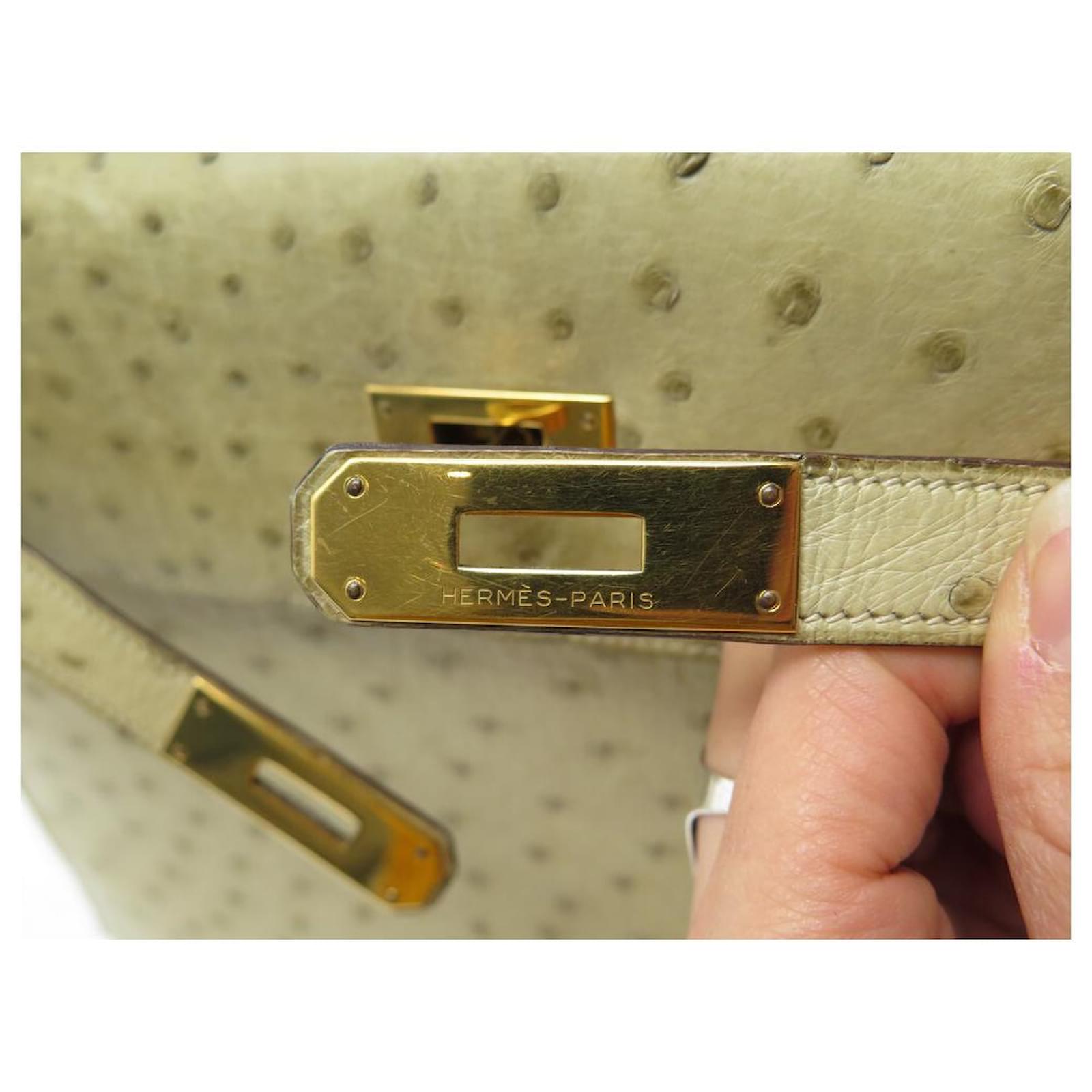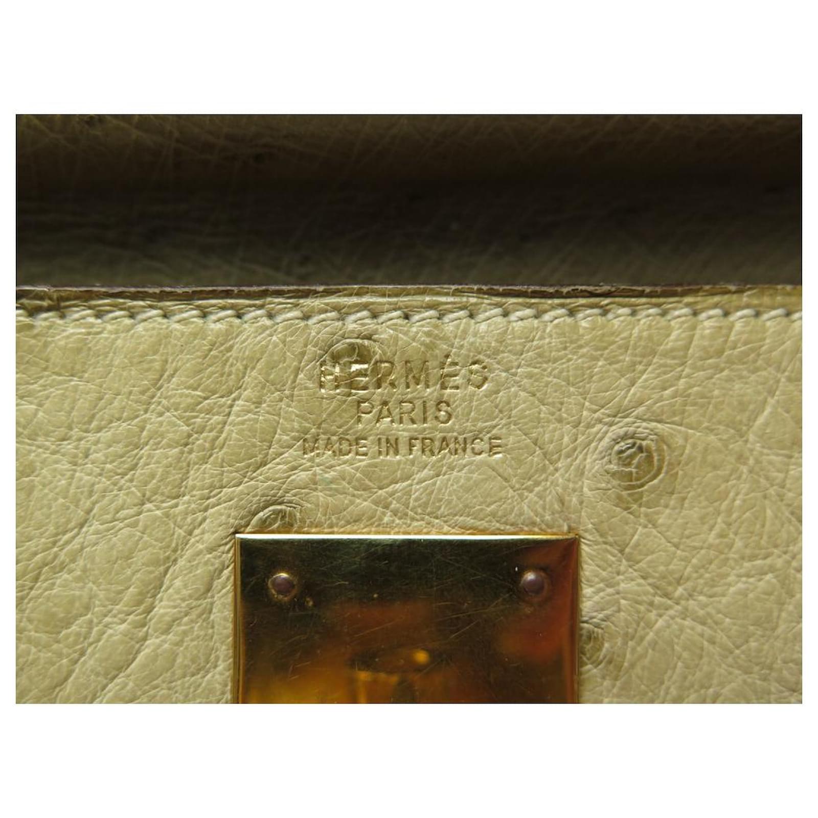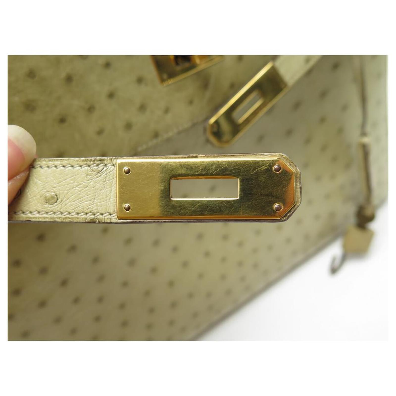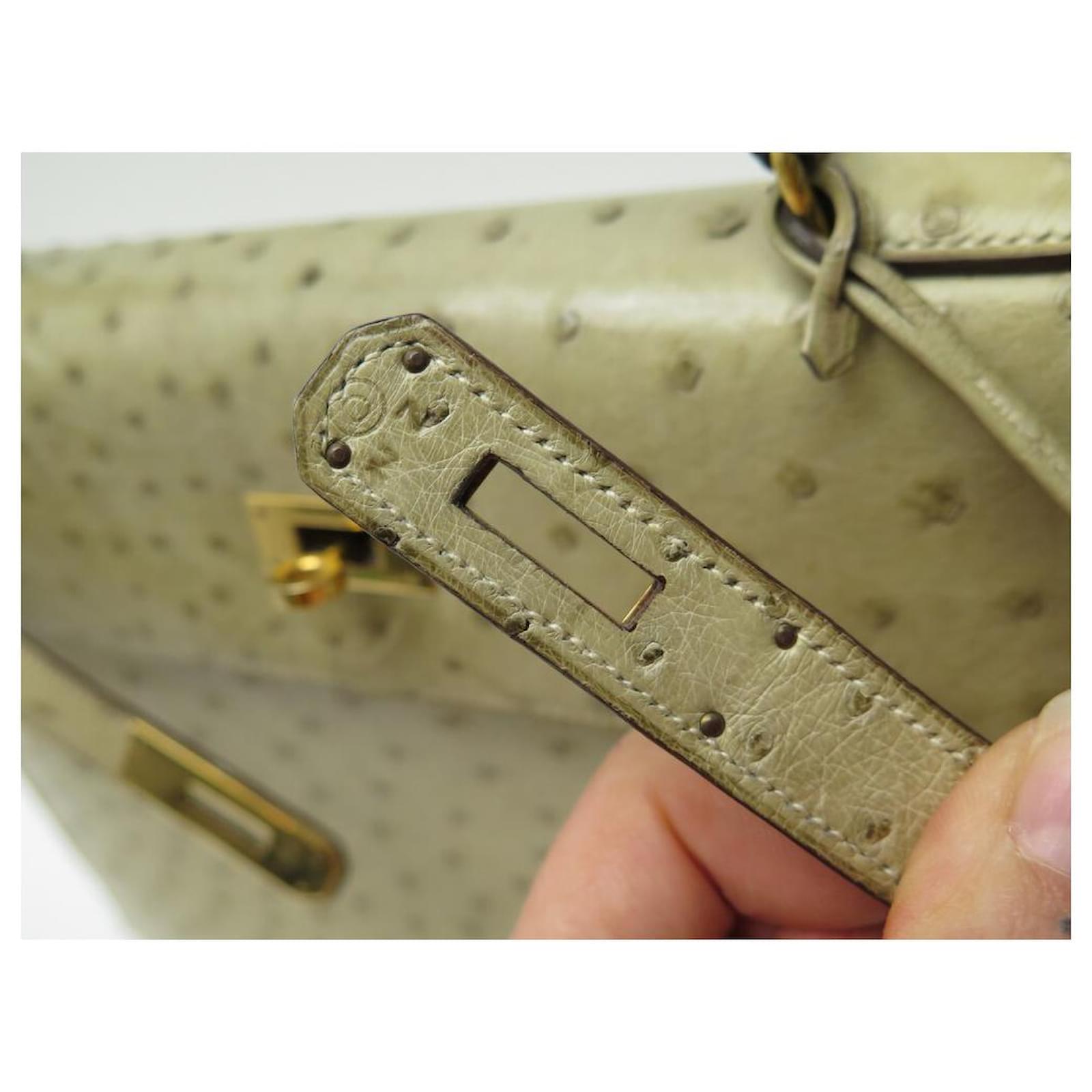 Hermès BOLSA HERMES KELLY 32 SELLIER DE CUIR DE AVESTRUZ TILLEUL VINTAGE Bege