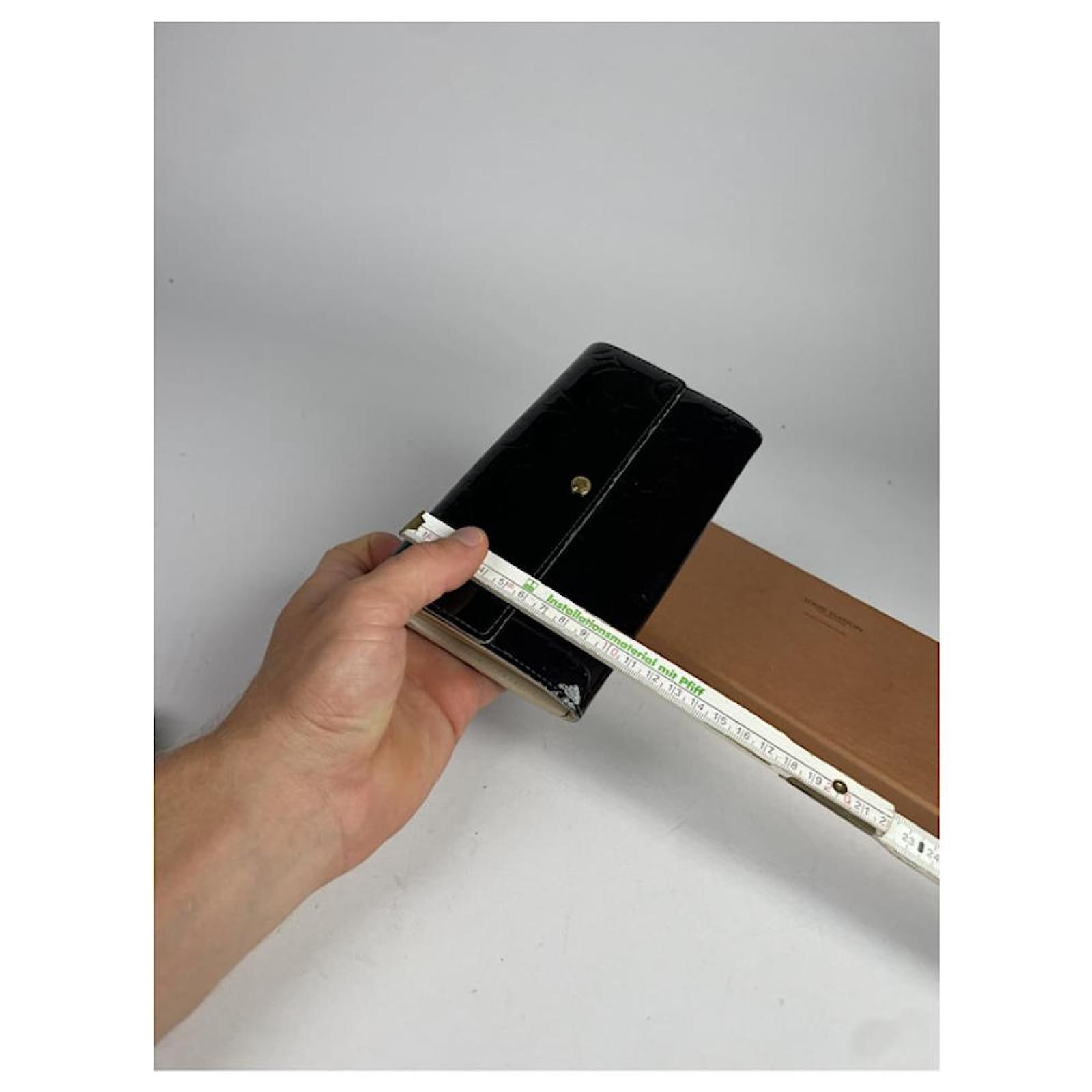 Couro Verniz: Couro verniz preto brilhante adornado com o icônico monograma Louis Vuitton que dá um toque de luxo e estilo a esta carteira.