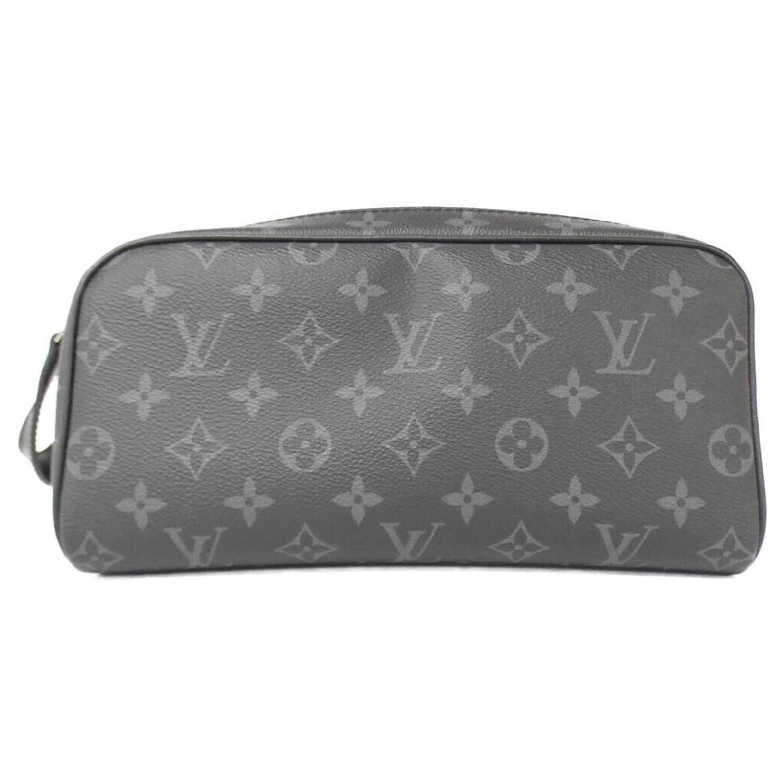 O Dopp Kit Monogram Eclipse da Louis Vuitton (Modelo M46354) é uma bolsa elegante feita de lona revestida durável na cor preta clássica, acentuada com hardware prateado. Medindo 15 cm x 28 cm x 16 cm, esta bolsa é projetada para praticidade e estilo.