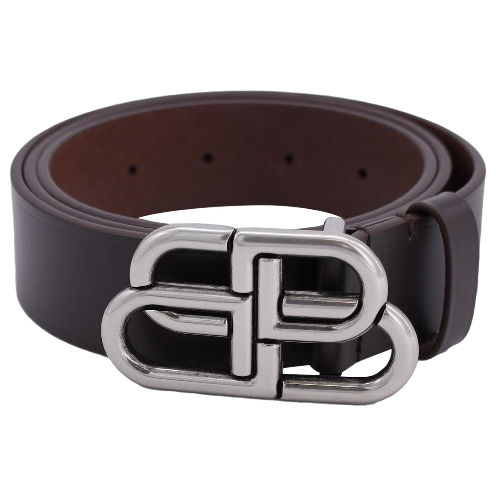Cinto grande com logotipo Balenciaga BB em couro marrom