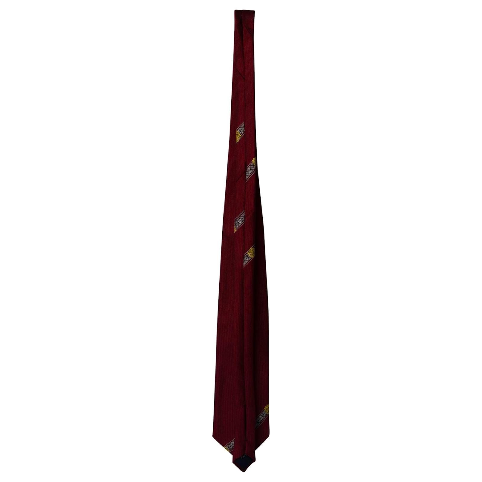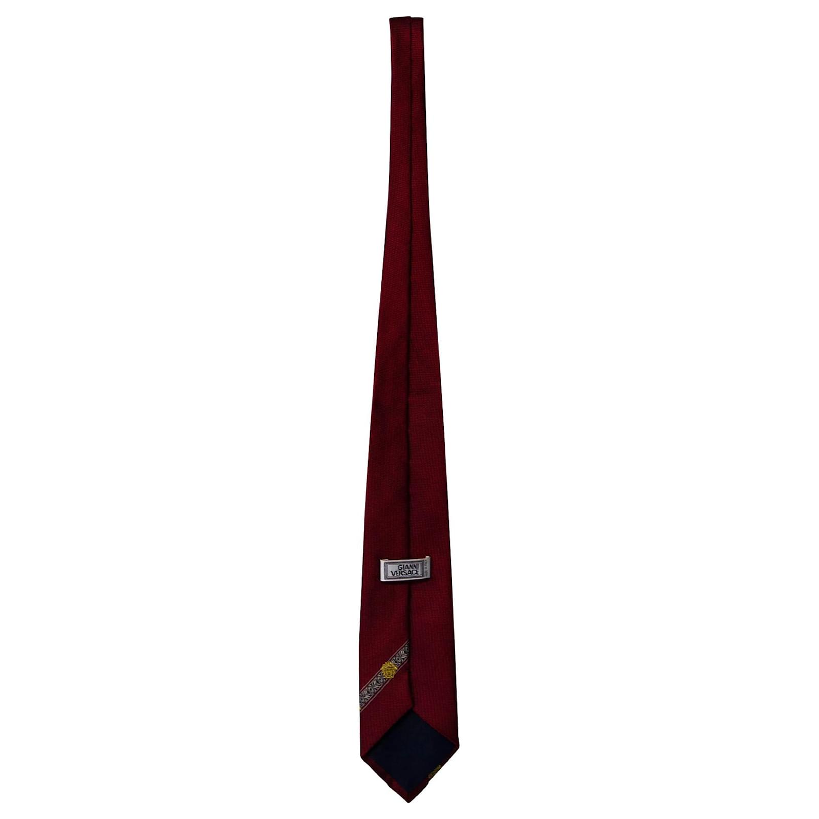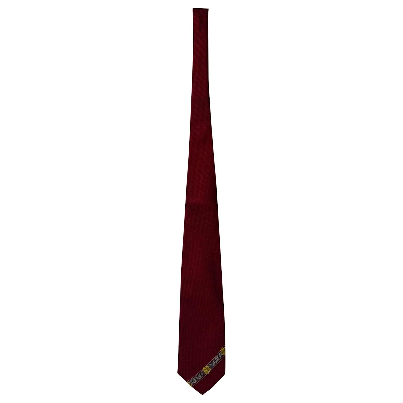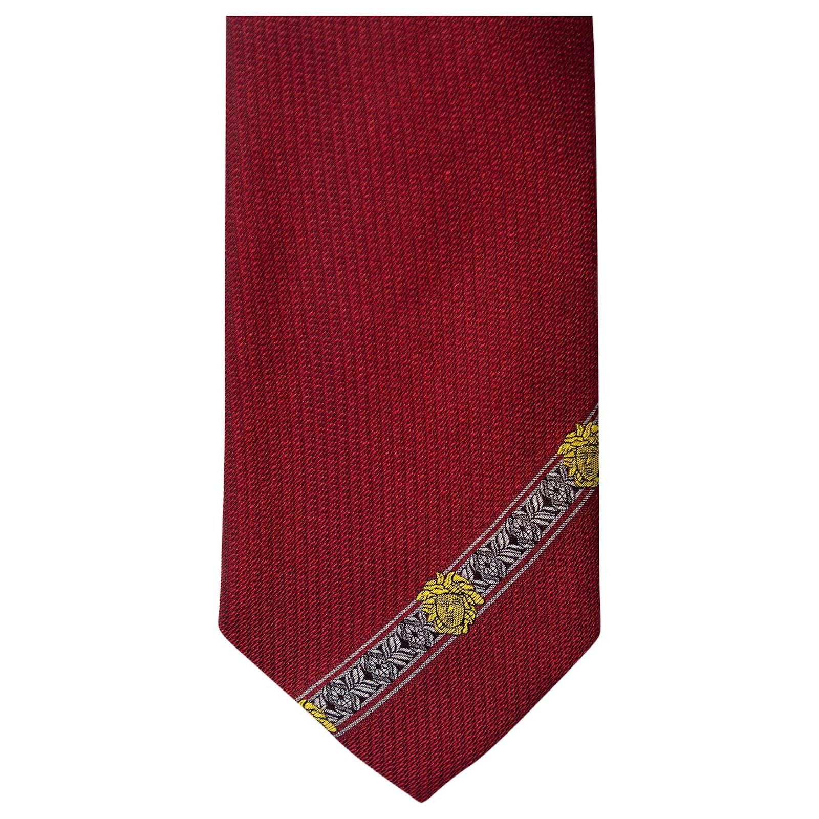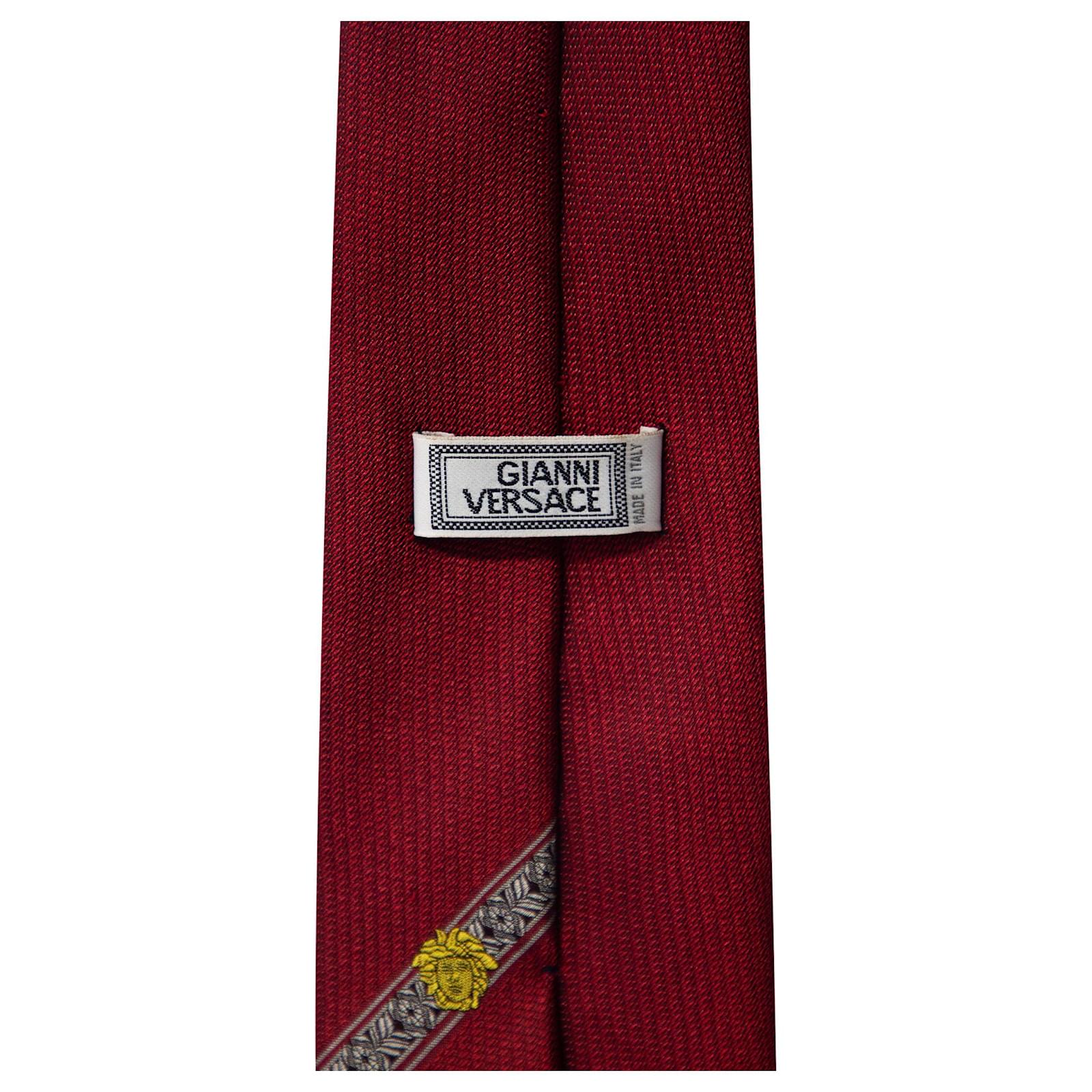 Esta gravata vermelha de seda da Gianni Versace é perfeita para o homem elegante. Projetada com uma faixa de medusa, esta gravata vem com a alça de etiqueta da marca na parte de trás. Esta gravata vermelha pode ser estilizada com várias roupas.